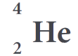 2 protonu ve 2 nötronu bulunan Helyum (He) atomu için; atom numarası ve kütle numarası sembolü etrafına aşağıdaki gibi yerleştirilir: