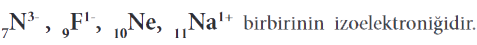 Elektron sayıları aynı olan farklı element atomlarıdır. İzoelektronik atomların fiziksel özellikleri farklı kimyasal özellikleri benzerdir. Farklı element atomlarının elektron sayılarının aynı olabilmesi için atomların elektron alması veya vermesi gerekmektedir. Bir atom elektron aldığında ya da verdiğinde iyon adını alır. Atomun aldığı veya verdiği elektron sayısı element sembolünün sağ üst köşesine yazılır. Atom, elektron aldığında negatif yüklü olup, (-) işareti ile gösterilir. Elektron verdiğinde ise, pozitif yüklü olup (+) işareti ile gösterilir. Aşağıda yer alan farklı atomların nötr ve iyon hâlleri;