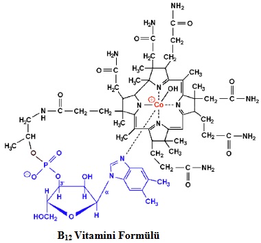 B grubu vitaminleri içinde en son keşfedilen ve en kompleks yapıya sahip olan vitamindir. Yapısında kobalt bulunduğundan kobalamin de denir.